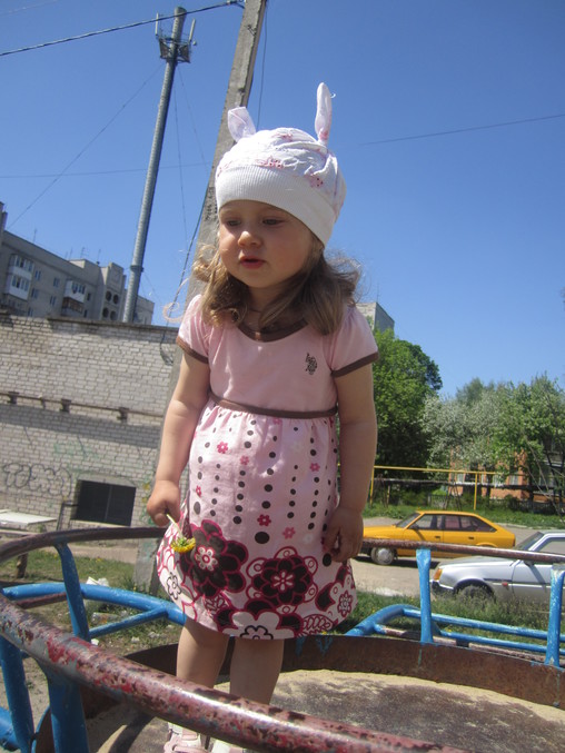 Катюша очень радует своим развитием.Такая маленькая девочка,а такая умничка!!!На вопрос"Какая у тебя мама?" она отвечает"Самая лучшая",так же и с папой.При долгих прогулках,останавливаеться и говорит"Я устала:)"при этом делая такое изморенное лицо))))это так забавно))))Считает до пяти,знает круг,квадрат,треугольник и ромб.Знает десяток стихов.Очень хорошо говорит предложениями,например:"Мама я иду на улицу,буду кататься на качеле",я спрашиваю что еще будешь делать,она:"Там птички,детки,буду с детками играть".Хорошо обьясняет где и что она спрятала,или куда что то отнесла,при просьбе,принесет или покажет где та или иная вещь.Из всех игрушек наконец появилась самая любимая,это мягкая игрушка Лунтик.Мы с ним и спим,иногда кушать идем,в коляске катаем,на улицу берем,мультики с ним смотрим,иногда правда называет его Кузей(кузнечек из этого же мультика),почему?...незнаю...Очень любит целоваться,и в губы и в щеки,особенно если у меня где царапинка или ударюсь или скажу что голова болит,прийдет и обязательно поцелует,еще обнять может.Так же и мы с ней,целуем,жалеем,обнимаем.да и вообще она у меня нежная и любвиобильная девочка,хорошо играет с детками,не бьеться,не кусаеться,делиться игрушками.Если говорю что идем на улицу,будем в песочке играть,она идет и берет набор для песка.Иногда говорит что не хочет в песке играть,что будет коляску катать.Часто сама решает куда пойдем и где будем играть.Кушаем не очень хорошо,но я бы не сказала что она худенькая.Да и вообще в такую жару не особо хочеться есть,поэтому стараюсь готовить для нее что то легонькое.Иногда не послушная.Может бросить бумажку на пол и при просьбе поднять,убежит в другую комнату.Но я не отстаю от нее пока не поднимет,хотя и нехотя,но идет и поднимает.Так же все еще не ходим на горшок.Тоесть ходим,но наполовину,только какать.Идет и сама садиться,при этом обязательно меня уведомит что она идет какать.Время от времени может пописать в горшок,если я посажу.Часто может долго сидеть ,встать и пойти куда нить на пол написать,что очень раздражает...А вообще у нас все хорошо.Спим,едим,играем...ростем...радуем маму с папой,все как и должно быть:)