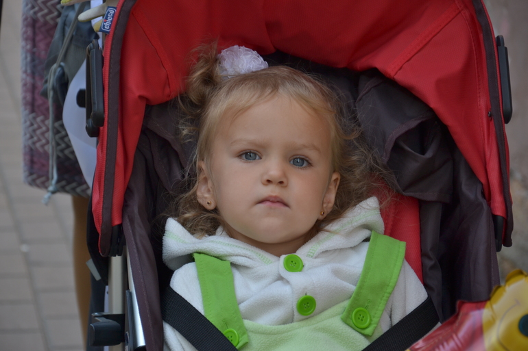В июне мы на участке поймали еще и кролика, хорошенького такого, черненького, маленького - видимо, убежал у кого-то, кролика назвали Винни, и он считался Алешиным, но через несколько недель он умудрился сбежать и от нас - видимо, Леша плохо закрыл клетку. Женя подросла, теперь уже абсолютно разумный человечек, со своим ОГО-Го каким характером. Говорит все-все. Активно наращивать свой словарный запас она начала с марта, с 2 лет, и к началу лет уже активно болтала обо всем на свете. Все лето, и до сих пор, мучила меня вопросами "Почему?", "Зачем?" и т.п. По-прежнему очень музыкальная, по-прежнему практически не проявляет интереса к рисованию и т.п. Ни в какой сад/ясли как минимум год еще не идем (а там, глядишь, и до школы дома досидим). Сейчас ей 2 года и 5 месяцев, одевается наполовину сама, памперсы забыты уже сто лет назад, говорит все, вот только спит до сих пор с пустышкой, и я уже плюнула на это дело, пусть сосет:(((( Вес около 13,5, рост примерно 95, с педитром нашей еще не встречалась, потом точнее напишу. Ножка уже ни много ни мало 24,5 р-р...Вот такая вот у нас принцесса.