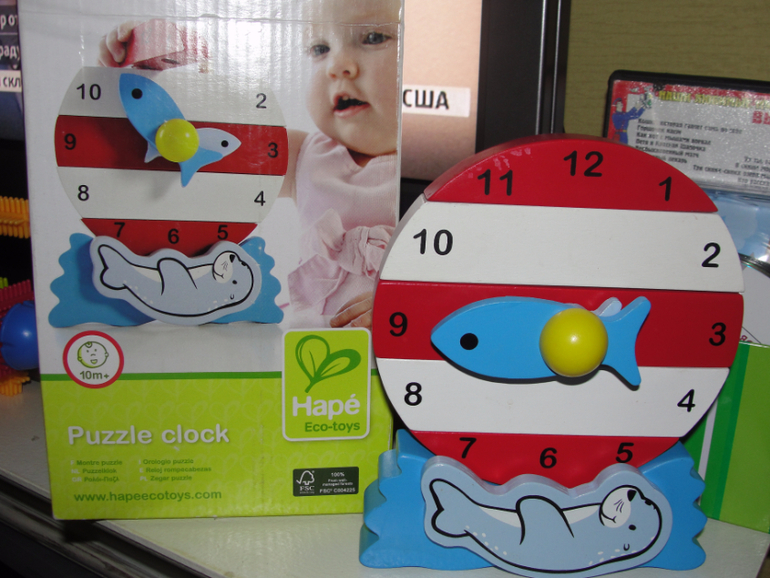 8) ПазлЧасы Эдуко На двух стрежнях нанизываются красно белые деревянные элементы...стрелки двигаются ( изучаем время) ...Если снять все элементы...оставить просто основание и стержни можно поиграть в плавающих рыбок и морского котика...так как крепления посредством резиночки и создается такой эффект. СОстояние новой.........................................800 руб