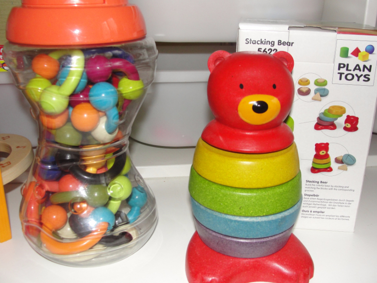 2) КОлечки -бусы Баттат...малыш может катать по полу коробку с яркими бусами, может доставать и укладывать элементы...может собирать цепочки и украшать себя как мама)) .....600 руб