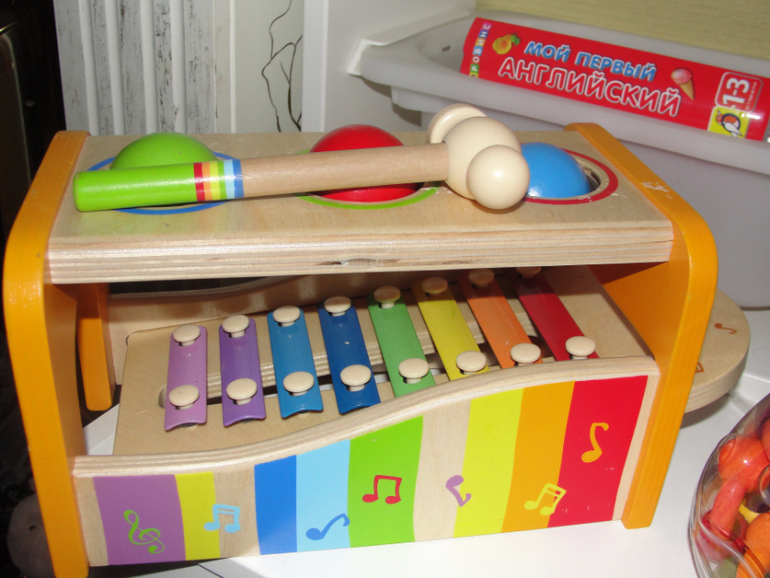 1) СТучалка-ксилофон эдуко. Редкая и оригинальная задумка-вещь совмещает две игрушки.Выполнена из дерева.Три ярких деревянных шарика, молоточек...когда стучишь по шарикам они выкатываются и мелодично съезжают вниз...МОЖно достать ксилофон и играть с ним.. ...............................900 руб