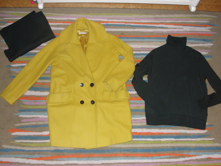Пальто яркое Marella свитер Cos шарф Mussimo Dutti размер М