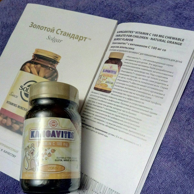 Витамин C, для детей Kangavites, с апельсиновым вкусом, 100 мг, Solgar, 90 жевательных таблеток. Производство USA