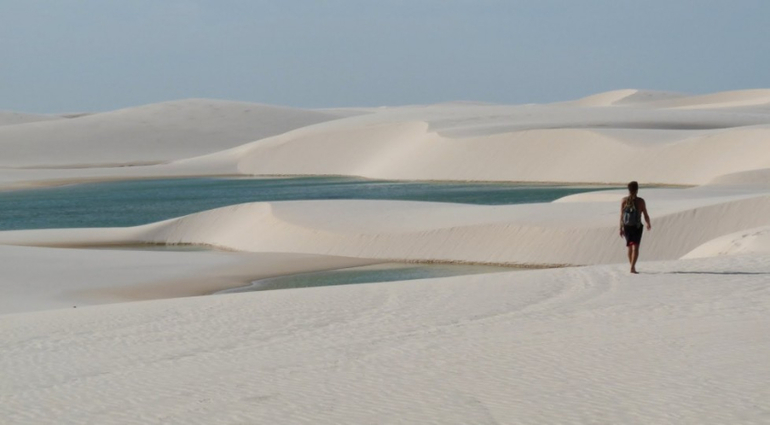 Национальный парк Ленсойс-Мараньенсис, который находится в штате Мараньян в северной Бразилии, является одним из самых изумительных и уникальных мест в мире. Область, охватывающая приблизительно 1000 кв. км, состоит из белых шелковистых дюн высотой до 40 м, на которых равномерно расположились бесконечные оазисы зеленых и бирюзовых озер. В сухой сезон Ленсойс-Мараньенсис (в переводе с португальского «простыни Мараньенсис») похож на типичную пустыню. Однако, в середине года эта область подвергается регулярному сезону дождей. Дождевая вода накапливается в долинах и между насыпями песка, формируя синие и зеленые лагуны, которые достигают пика наполнения в июле-сентябре. Эта область также удивительна тем, что является обителью множества рыб. Несмотря на почти бесследное исчезновение лагун в течение сухого сезона, предположительно, что рыбью икру сюда приносят птицы с моря. Существует мнение, что икра остается в песке, и с приходом дождей из этой икры появляется рыба. Ленсойс Мараньенсис хоть и похож на пустыню, однако это не безжизненные пески. Во время сезона дождей сюда прилетают птицы. Когда влаги достаточно, здесь буквально оживают мангровые заросли высотой до 12 м, являющиеся пристанищем гигантских крабов, золотых зайцев Агути, кайманов и оленей. Здесь всегда, а особенно в сезон дождей, много отдыхающих и туристов, ведь чистейших пляжей с теплой пресной водой тут достаточно. В силу своей уникальности пустыня Ленсойc-Мараньенсис не обделена вниманием кинематографистов. Здесь был снят бразильский фильм "Дом песка" (2005), также здесь снимались несколько серий бразильского сериала "Клон" (2001). В Ленсойc-Мараньенсис также снимался танец, который можно видеть в индийском фильме "Робот" (2010). Наилучшее время посещения этих мест - сезон дождей с мая по сентябрь, когда солнце еще не успело осушить озера. В этот период в них еще можно купаться и даже ловить рыбу. В сухой сезон, когда лагуны высыхают под палящим солнцем при +45°С, эта местность больше напоминает пустыню Сахару, оправдывая свое негласное название "Бразильская Сахара".