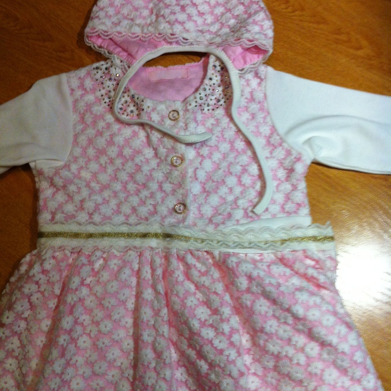 Комбинезон - платье с шапочкой. Состояние новой вещи. Отдам за 1500 вместе с шапочкой покупала шапку отдельно.. Смотрится очень красиво воротник отделан камнями сваровски.