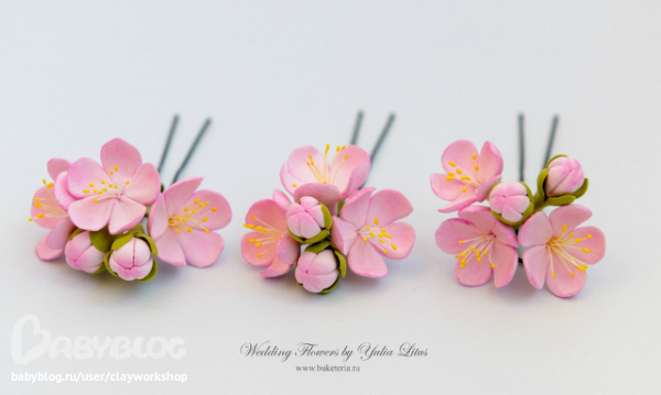 Цветы из глины для свадебной прически.