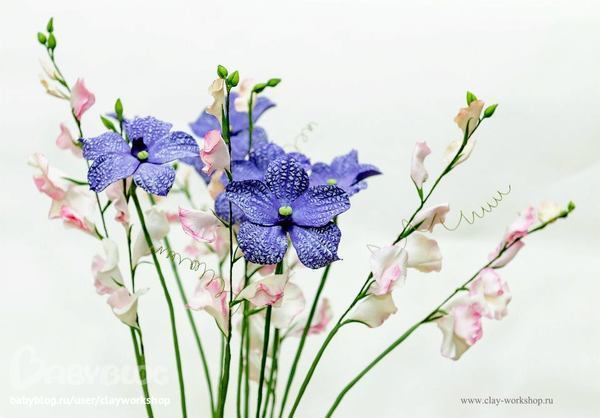 Душистый горошек и орхидея Ванда