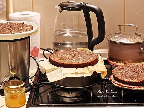Печь при 200С полчаса (я пекла без конвекции, а сверху накрыла листочком пергамента). Дать выстояться на решетке (я переворачиваю форму с выпечкой вверх дном). До полного остывания.