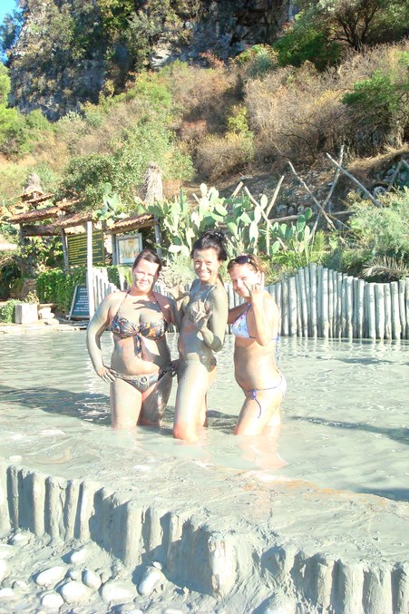 Целебные свойства местных источников были известны людям с древних времен. Бассейн естественного происхождения заполнен сернистой водой, а дно покрыто лечебной грязью. На курорте Дальян лечат заболевание опорно двигательного аппарата, артриты, защемления, а также кожные заболевания. В бассейне с лечебной грязью настолько плотная вода что погрузится полностью практически невозможно, она выталкивает вас как пробку от бутылки. Насладившись купанием в грязевом бассейне надо намазаться грязью и дать ей высохнуть на солнце. Вся процедура занимает минут сорок. После таких «грязевых ванн» нужно принять душ и перейти в бассейн с горячей минеральной водой 39 градусов. Грязи Дальяна насыщены серой и полезны для кожи, а применять их можно без рецепта врача. Туристы приезжают также в термы Султание находящиеся неподалеку, плюхаются в природный бассейн и возятся там по уши в теплой грязи. Самый же известный источник находится возле горы Олмез, что в 4-х километрах от города. Температура его воды около 39 градусов, содержит он радон, сульфид и хлорид кальция. Приносит вода этого источника облегчение больным кожными и гинекологическими заболеваниями, а также при болезнях опорно-двигательного аппарата. Химический состав термальной воды в Дальяне.