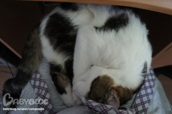 Еще так интересно, Шпрот очень любит лежать на коленочках, когда я сижу за компом...и тааак сладко мурчит...еще устроится так - мордочка на животе или полностью свернется...мне даже кажется, что мне как то хорошо сразу становится, когда он так полежит и помурчит...сегодня даже рассказывала ему, что скоро у нас будет прибавление...а когда ребенку будет 10 лет, то Шпротик мой будет уже старенький - 12 летним котиком...сказала ему это и расплакалась, дурочка....Как представлю...что его может не быть...это просто ужас в моей душе...пока писала еще раз расплакалась...