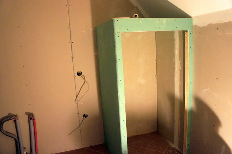 Потом ниша под накопительный бак. Бак у нас будет такой, что запаса воды хватит на 3-4 дня. Ибо отключают иногда воду, не хочу зависеть. От ниши пойдет столешница влево.