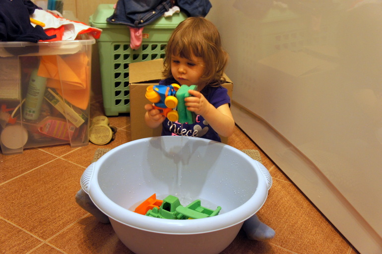 Машинок у нас много. Целый парк. Налила я тазик с водой, говорю давай машинки помоем...сначала энтузиазма не было вообще, я расстроилась, думаю, ну что за ребенок - ничего не вдохновляет =) думаю ну все, выливать нужно. Вышла из ванны, захожу - она намывает сидит =)