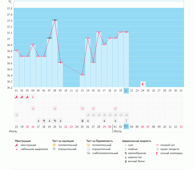 Девочки, помогите разобраться!!! По графику (до сегодняшнего дня) думала, что овуляция была на 13 или 14 д.ц. (но график её не отметил из-за того, что несколько дней не мерила БТ), а тут сегодня он берёт и рисует её на 21 д.ц. Я пью Дюфастон с 14 по 25 д.ц. и по идее у меня на 28 д.ц. начинаются месячные...Что теперь делать, когда делать тесты и что делать с Дюфастоном (осталось 2 дня применения, считая