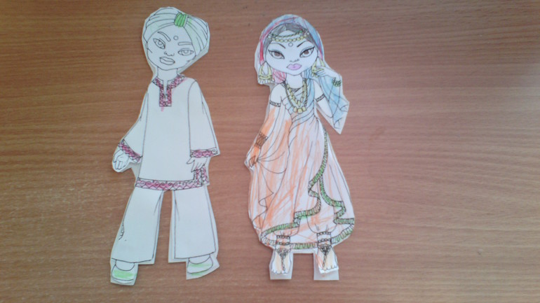 Они рассказали, как их зовут, где они живут, какую одежду носят, девочка попросила сделать ей красивый цветной наряд. С энтузиазмом сделала)) Наряд ей очень понравился.Картинки тоже посмотрели.
