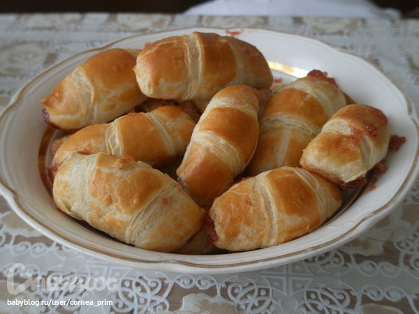 Осталось слоеное дрожжевое тесто, вот и решила его применить. Начинка земляничный джем (из магаза), смазала яичком и выпекаться! МММ...