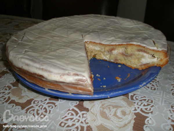Все тот же рецепт, но без яблок и + крем сметана и сахар. И коржи пропитала стропом из клубничного варенья. Вот что получилочсь...Очень нежно и вкусно