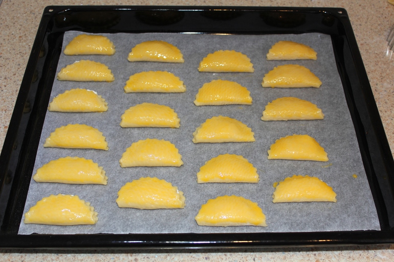 Сочни смазать желтком. Отправить в духовой шкаф для выпекания
