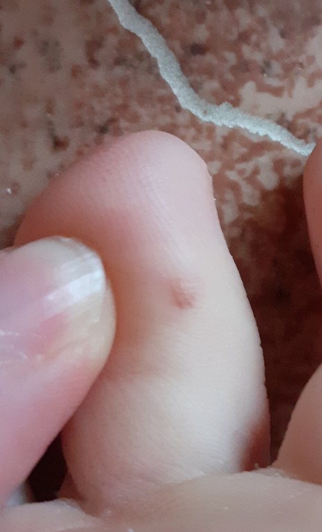 Или это что то плохое. В реале не розоватое. Не болит.не помню, что бы уколола.а по виду как царапка