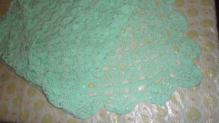 Ручная работа , нежные и мягкие. Мятный - 100 на 150 см, персиковый 70 на 120 см без кружева. Цена обсуждается . 1500 и 1000 условно