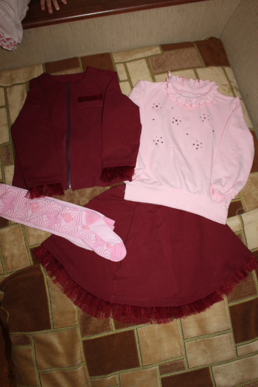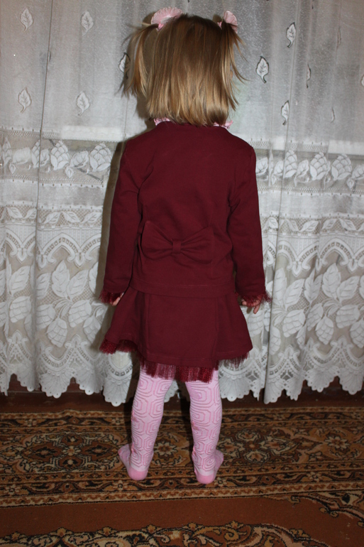 Шить его начала еще до роддома...сделала жакет и кофточку, юбку выкроила, но закончить не успела...Сделала на рост 110, потому как знала, что в этом году навряд ли уже оденем...