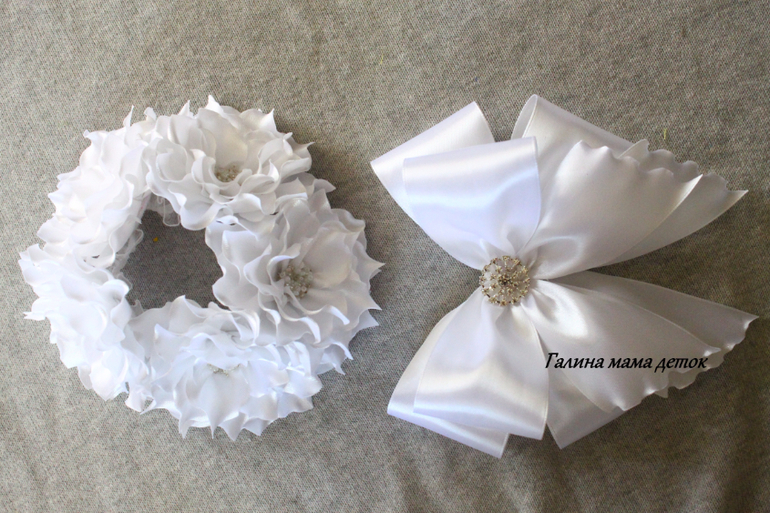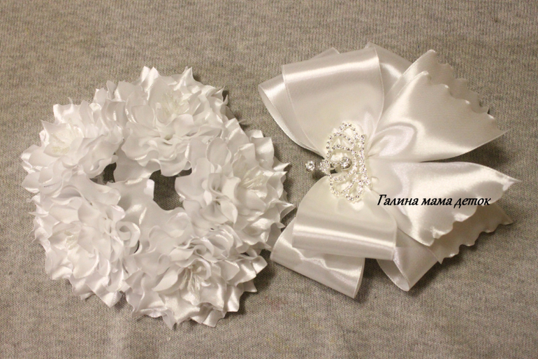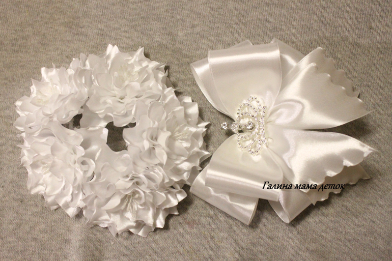 Ты мастерица, а я мастерам доверяю))) Волосы у моих до попы, это важно для украшения в косу? Нужно мерить длину? А на пучок - с короной и просто с белым бантом понравились. Чисто серые не хочу, а вот серый с белым можно.
