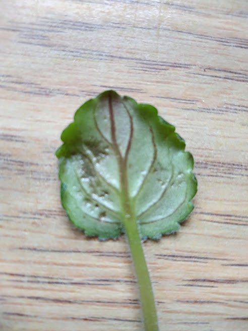 листики очень слабенькие, кладу в воду на профилактику))) маленький листик не так давно куплен, а вот большой еще в январе и только показались корешки.