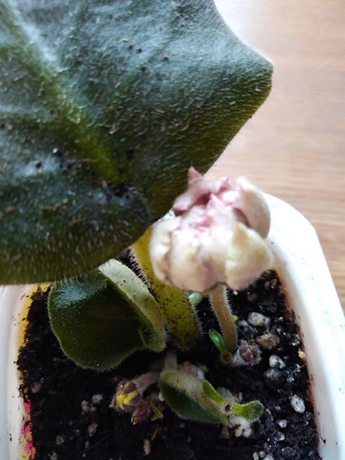 А это настоящий сюрприз. От листика пошли сразу три бутона. Посоветовали бутоны оборвать. Один оставила для интереса. Так листик еще три бутона выкинул)))