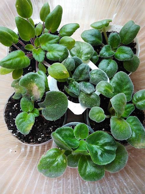 А вот так подросли остальные сорта фиалок: