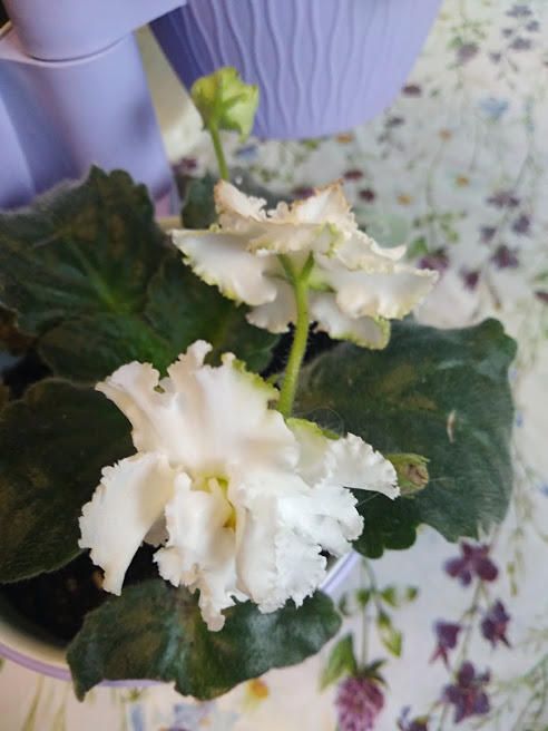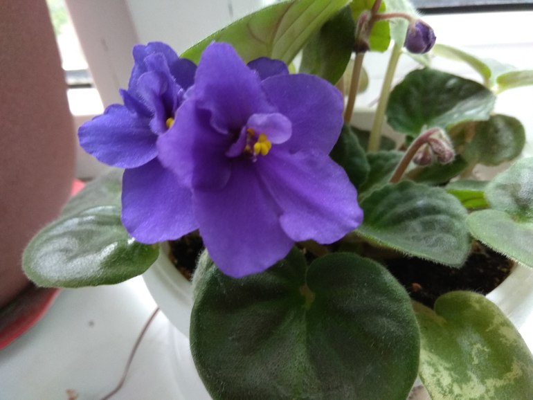 А вот мои первые фиалочки. Имени не знаю, но долго ждала цветов