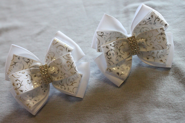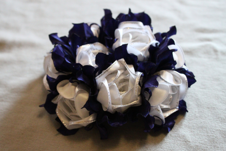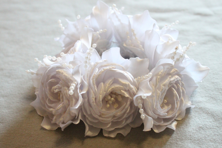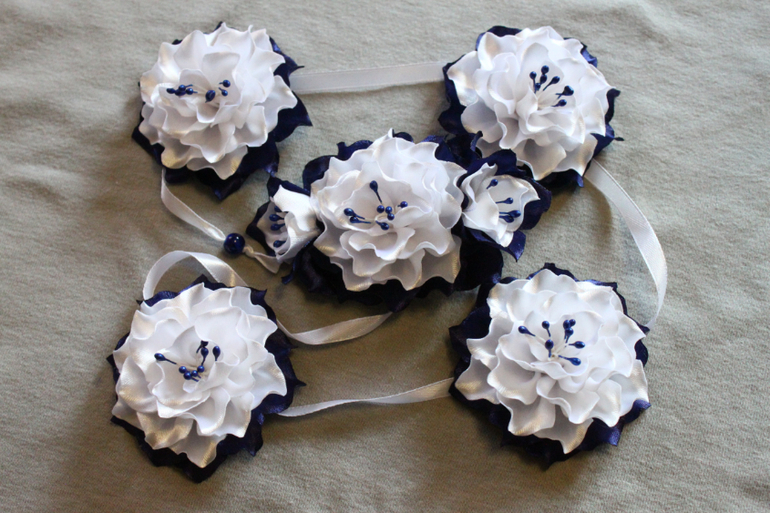 Все последние украшения на пучок делала без бантов, но пришлось добавлять цветочки, поэтому на фото цветочки приподняты, чтобы все уместились)))