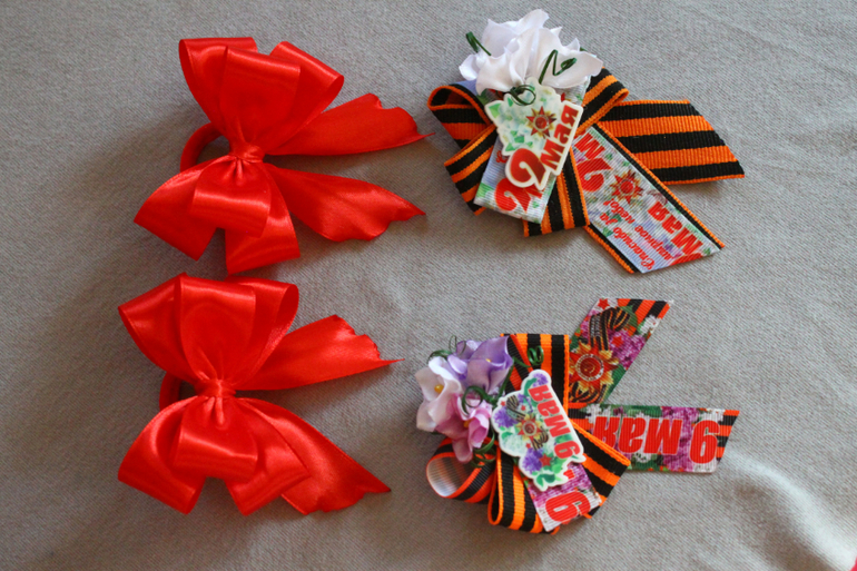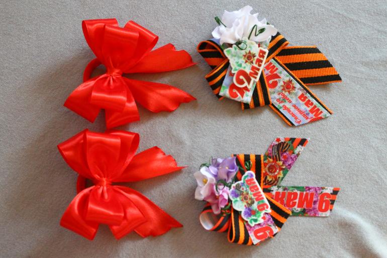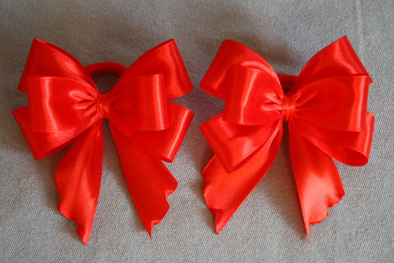 3 в этом году у меня красные бантики. На фото бантики на косички с маленькими резиночками, можно сделать на заколочках.