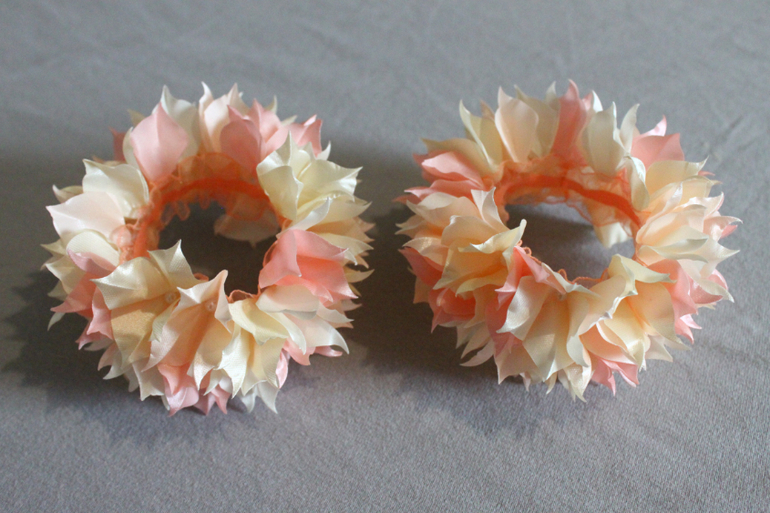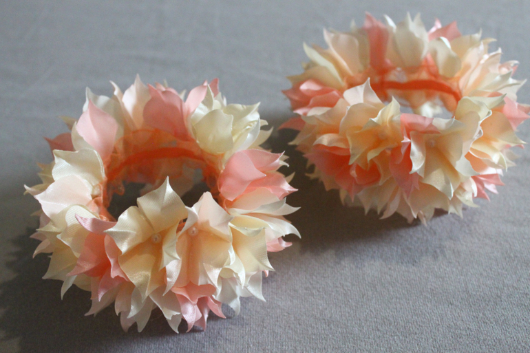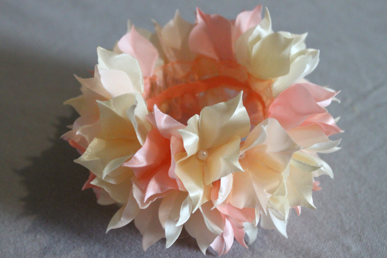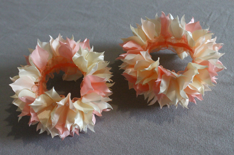 Но на этот раз здесь использовала 4 оттенка лент и резиночки побольше размером.