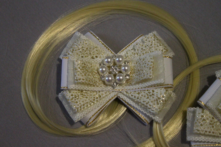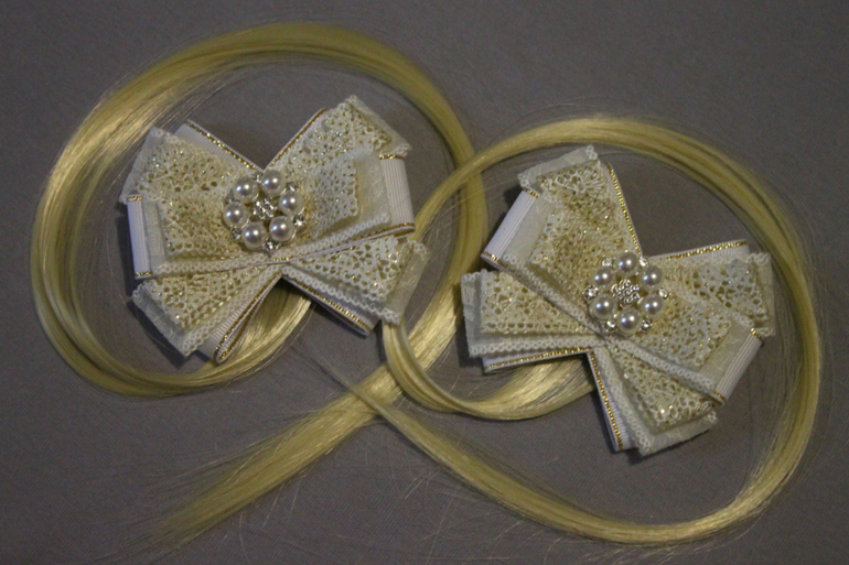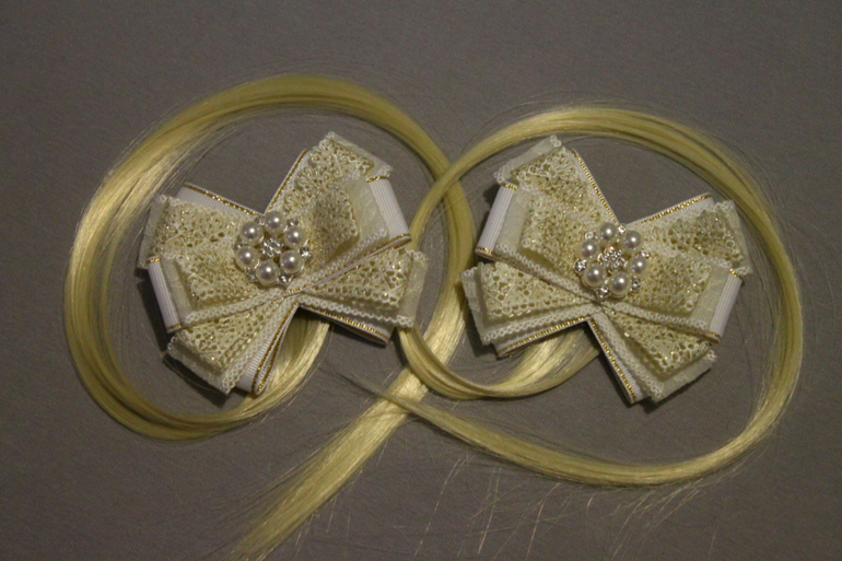 в этих бантиках цвет немного искажен, подойдет под такое платье
