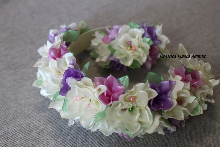 1. украшение на пучок розово-сиренево-фиолетовое.