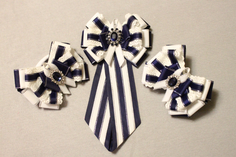 Девочки, вы не один раз спрашивали комплекты под форму резиночки с галстуками или брошками и вот я решилась...оцените))