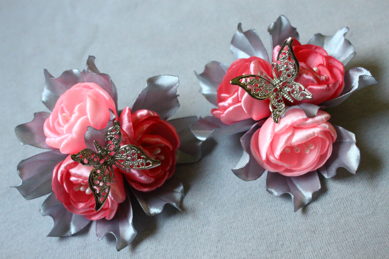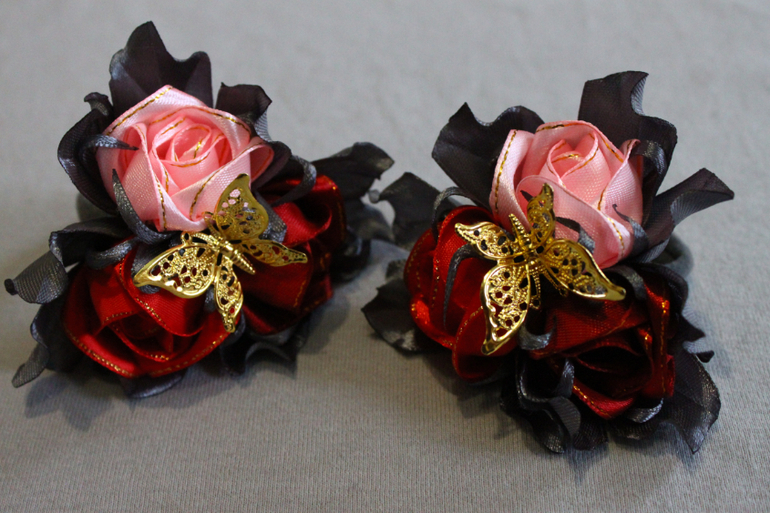 Все последние украшения на пучок делала без бантов, но пришлось добавлять цветочки, поэтому на фото цветочки приподняты, чтобы все уместились)))