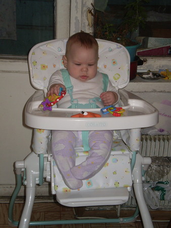 У нас стульчик есть. Но мы в нем не едим ;))) Покупали подержанный - чтоб не жалко было, если не пригодится. Я кормлю, сидя на стуле - держу на коленях.