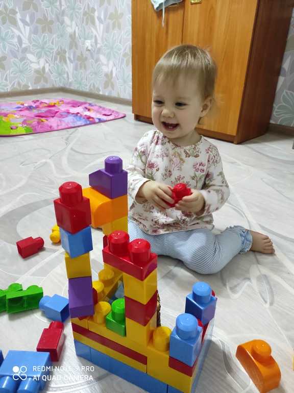 Дни стали лететь... Очень деловушечная девочка)) Появились персональные дела - относить салфетки и подгузы в ведерко. Помогает собирать игрушки. После года как будто какая то самостоятельность стала появляться, вытирает руки об полотенце, зубки я ей чищу и обязательно ей даю щетку, тоже "чистит", старается. Сама хочет есть.