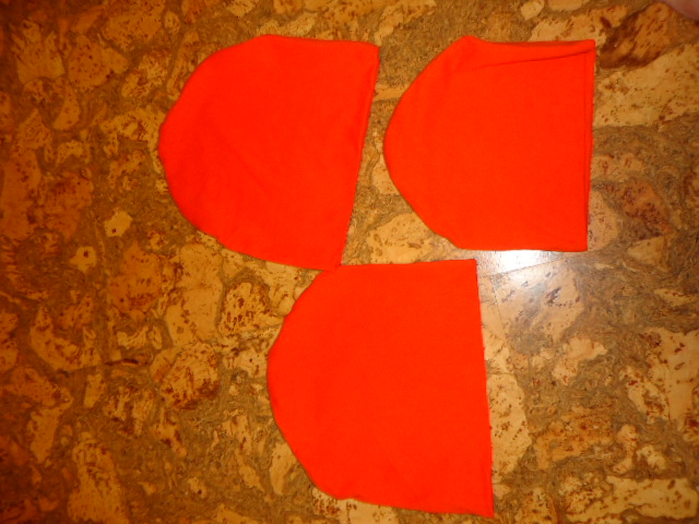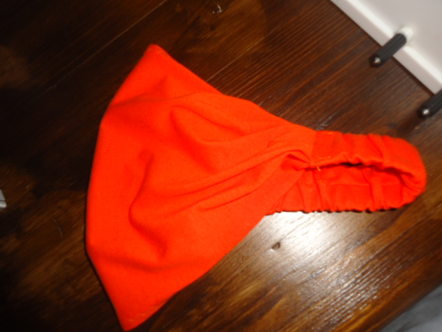 Вот, наделала чего: желто-черное - это Сашиным барменам, корпоративные цвета у них такие, а рыбка - эмблема. Только маркер по ткани кончился быстро :( А розовое и оранжевое - это мне и етям. И еще один такой оранжевый комплект дорогим сердцу людям лежит в ящике. А шляпа - Саше, как видно по цветам, тоже "рабочая", чтобы от барменов отличался. Хотя шапку он себе тоже стребовал желтую, но я ее не снимала. Вот, научилась делать повязочки-косыночки.