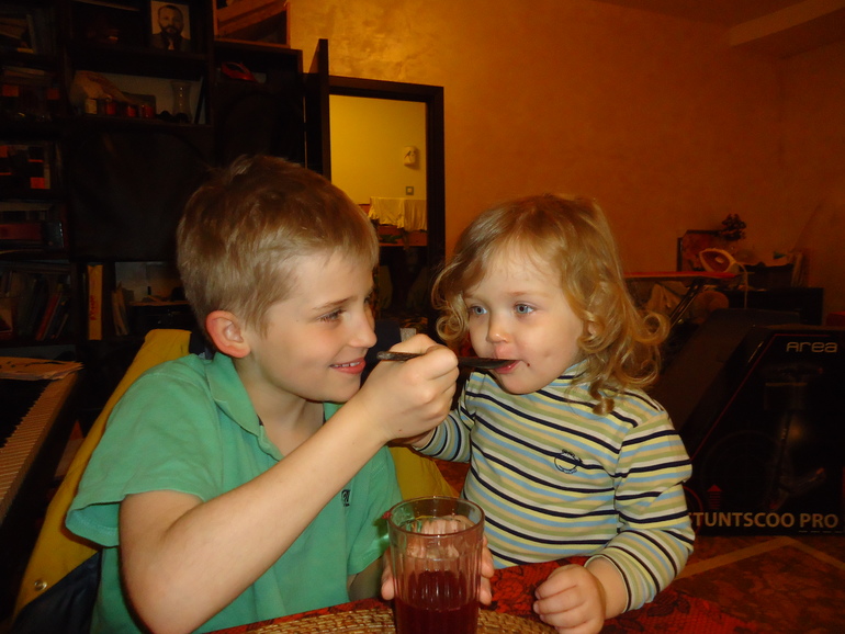 И не говори. Любит она Костю без меры, поэтоу и достается ему от нее больше всех. Командует Мила им, укусить может и ударить. Уже устала объяснять, ругала, даже по попе стучала.
