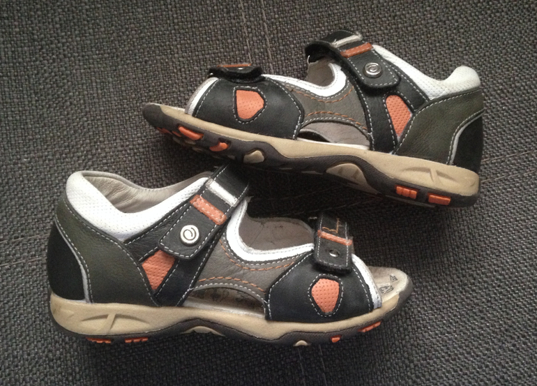 Кожа на коже, жесткая пятка с мягким ободком - ножку не натирает, липучки, Состояние хорошее - носили мало - 800 руб.