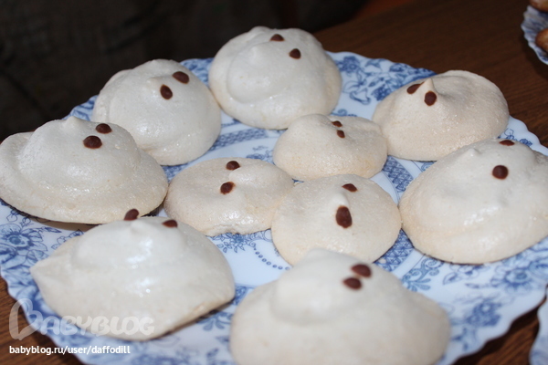 А это привиденияиз безе. Первый раз делала безе, не очень плотно взбились белки, но идея очень понравилась.
