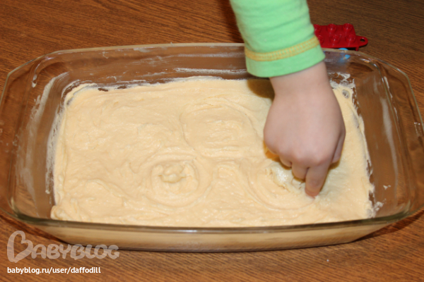 Дело было вечером, делать было нечего, а вкусненького чего-то хотелось, да и пачка творога лежала в холодильнике без дела. Вот и решили мы с Сереженькой испечь кекс.