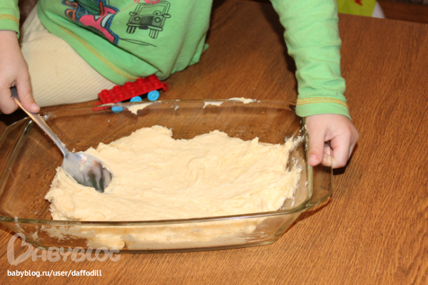 замешиваем тесто. ЧУть про главный ингредиент ТВОРОГ не забыли, положили в последний момент, уфф (в фото ингредиентов его тоже нету :)...ну смазываем форму маслом