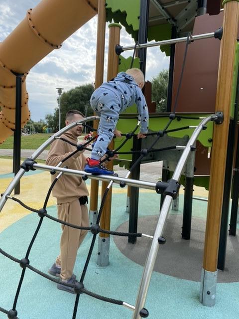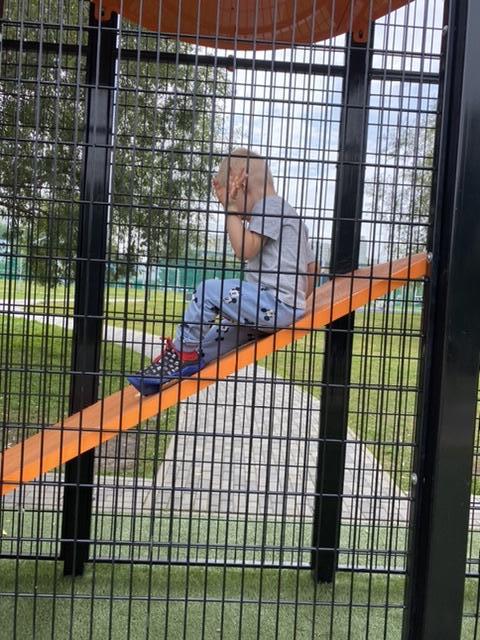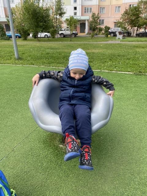 Площадок много у нас, Тиме очень нравится. Все уже близлежащие обошли. Хорошо общается с детьми, рассказывает им про игрушки, показывает что-то, предлагает поменяться или поиграть. Но все равно достаточно осторожный, если на лесенках/лазилках уже кто-то есть, он уходит, говорит «там детки, я подожду».