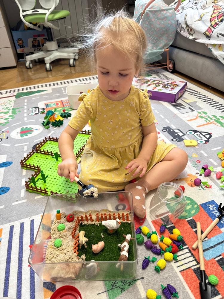 Ева любит как играть в компании, так и самостоятельно чувствует себя вполне хорошо. Придумывает, что она зайчик или волк, изображает их. Или на улице ищет сову, лисичку)) говорит вон вон, я видела, сова полетела!