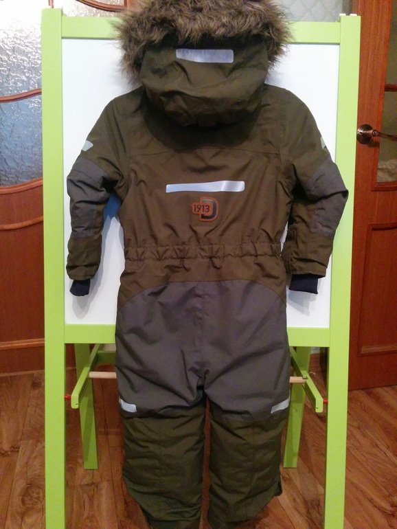 Цвет хаки. Состояние отличное, только штрипки отпорола, одевали раза 3, сыну оказался неудобен, взяла потом раздельный. Цена 4000 р. Почта.