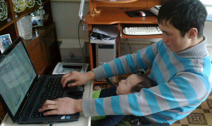 а вот как-то с утра оставила я нашего папу поняньчиться, сама пошла принимать утренний туалет и т.д. прихожу и что я вижу!:)))