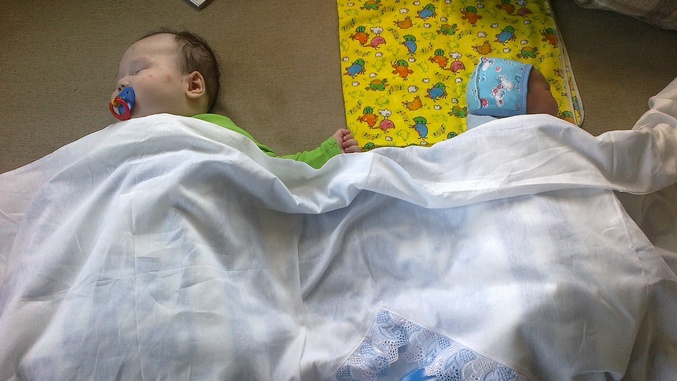 спят вдвоем) а в это время мамочки разговаривают: не верится, что мы уже МАМЫ)))