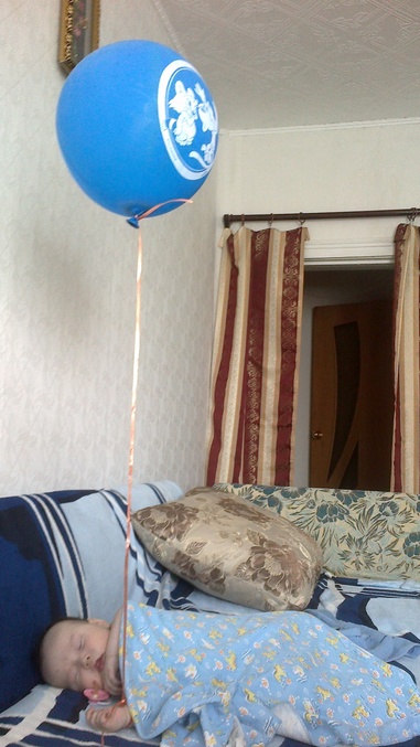 а это мы приехали домой, поигрались с шариком, устали и уснули)))
